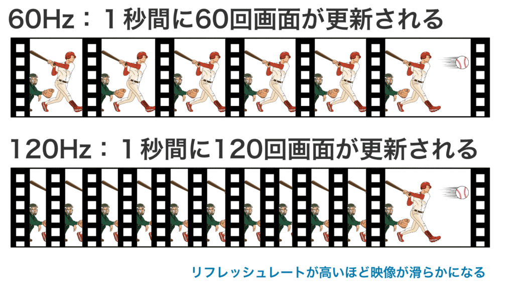| リフレッシュレート | 60Hz | 60Hz | 60Hz | 60Hz | 120Hz | 120Hz |