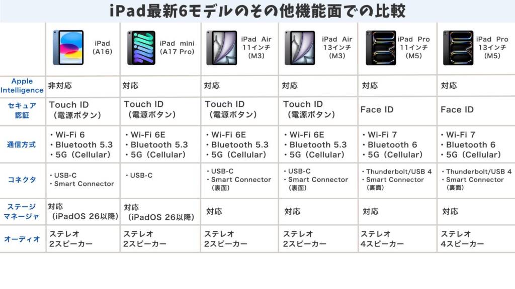 | 対応OS | iPadOS 26 | iPadOS 26 | iPadOS 26 | iPadOS 26 | iPadOS 26 | iPadOS 26 |