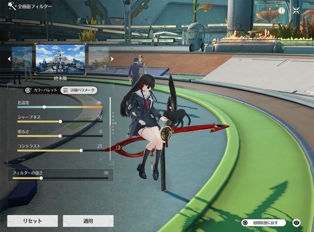より淡い色合いになり、終末世界が舞台である鳴潮の雰囲気をより感じたいならおすすめのフィルターです。